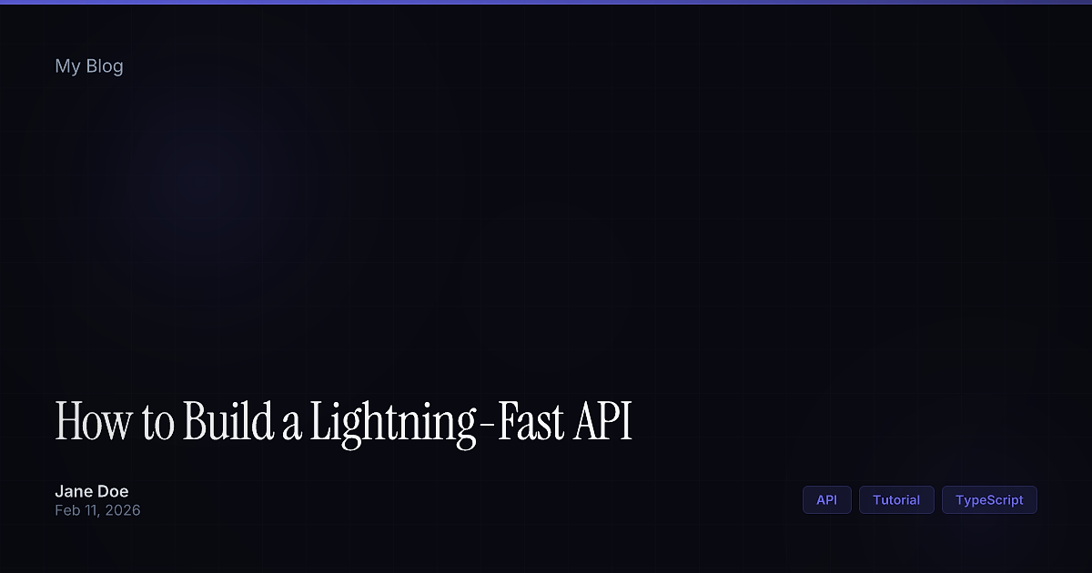 /v1/og/blog-post?title=Hello+WorldEvery parameter is a simple query string. LLMs can construct image URLs without writing fetch logic, file I/O, or complex integrations. Perfect for vibe coding your next project.